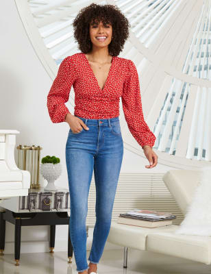High Waisted Raw Hem Skinny Jeans SOSANDAR M S Very well made.