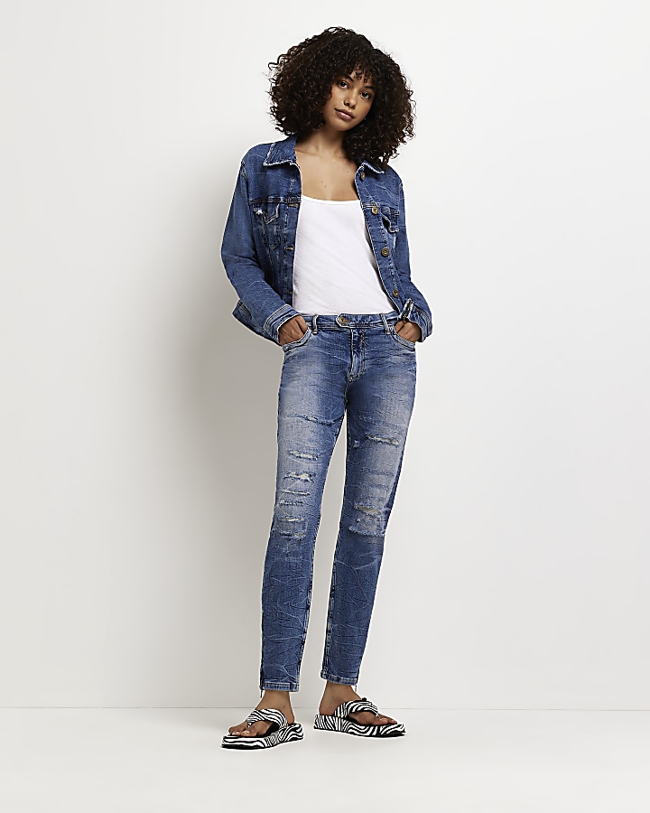 Blue ripped low rise skinny jeans Very well made.