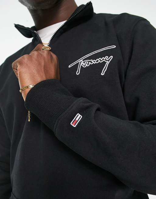 Tommy Jeans cotton signature logo half zip sweatshirt in black Very well made.
