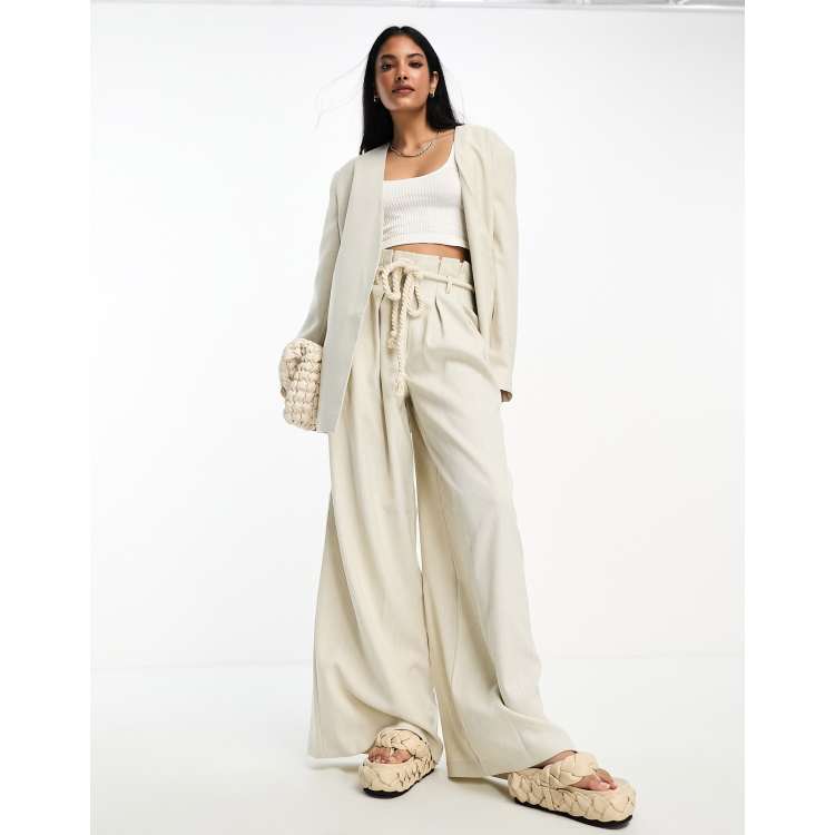 ASOS DESIGN extreme wide leg suit trouser with paperbag waist and rope belt in natural Very well made.