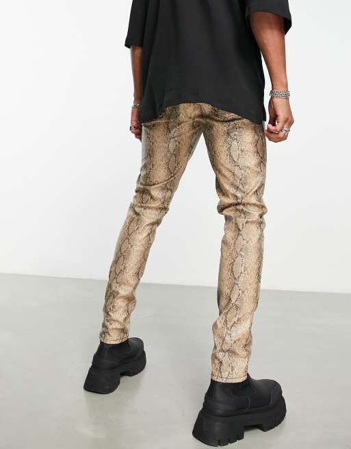 ASOS DESIGN skinny fit jean in ecru snake print leather look Very well made.