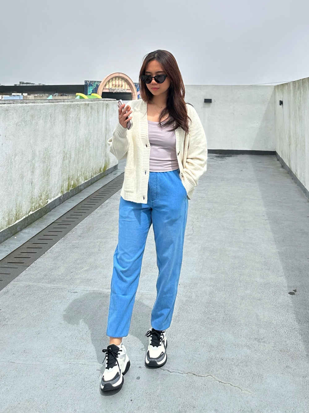 Check styling ideas for Denim Jersey Tapered Trousers UNIQLO IN Very well made.