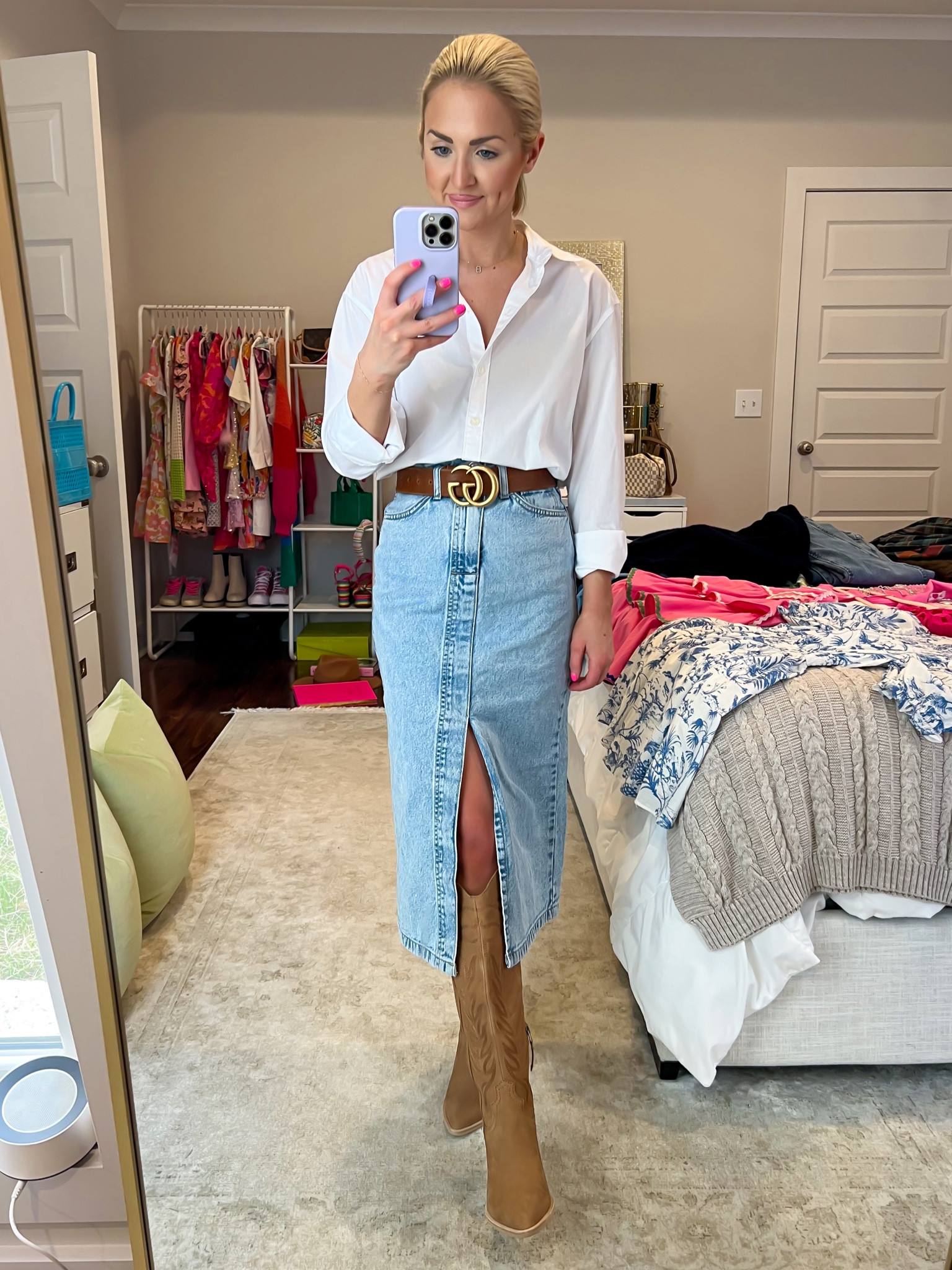 Western Denim Shirt White Peasant Skirt Meagan s Moda Very well made.