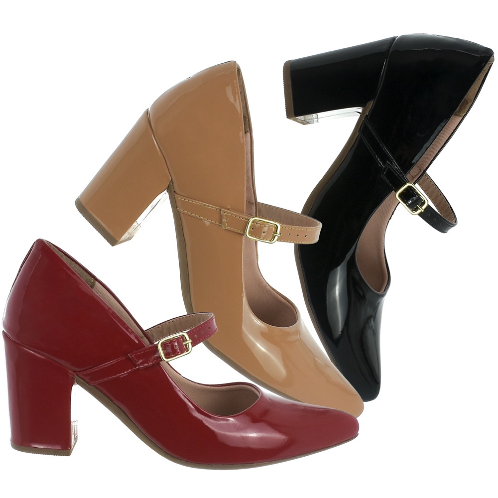 Sapato Bico Fino Boneca Scarpin Verniz Preto Nude Caramelo Vermelho Femina Feminino Salto Grosso Very well made.