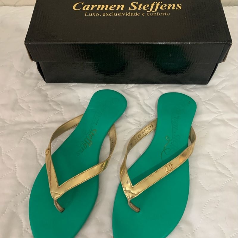 Rasteira Rasteirinha Carmen Steffens verde Dourada Tamanho 36 Rasteira Feminina Carmen Steffens Usado 82398023 enjoei Very well made.