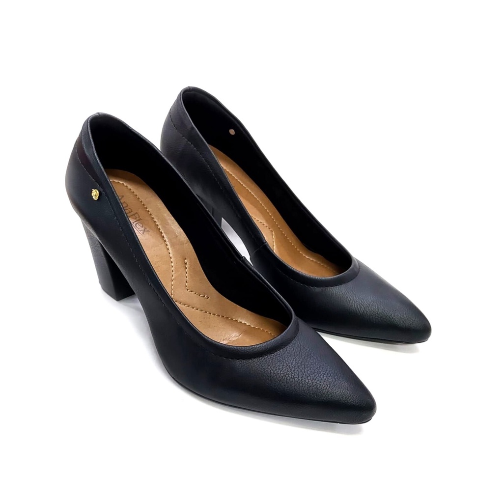 Ana Flex Sapato Scarpin Salto Grosso Salto 9 cm Ref. 181603 Tamanhos Especiais Feminino Numera o 40 41 42 43 Very well made.