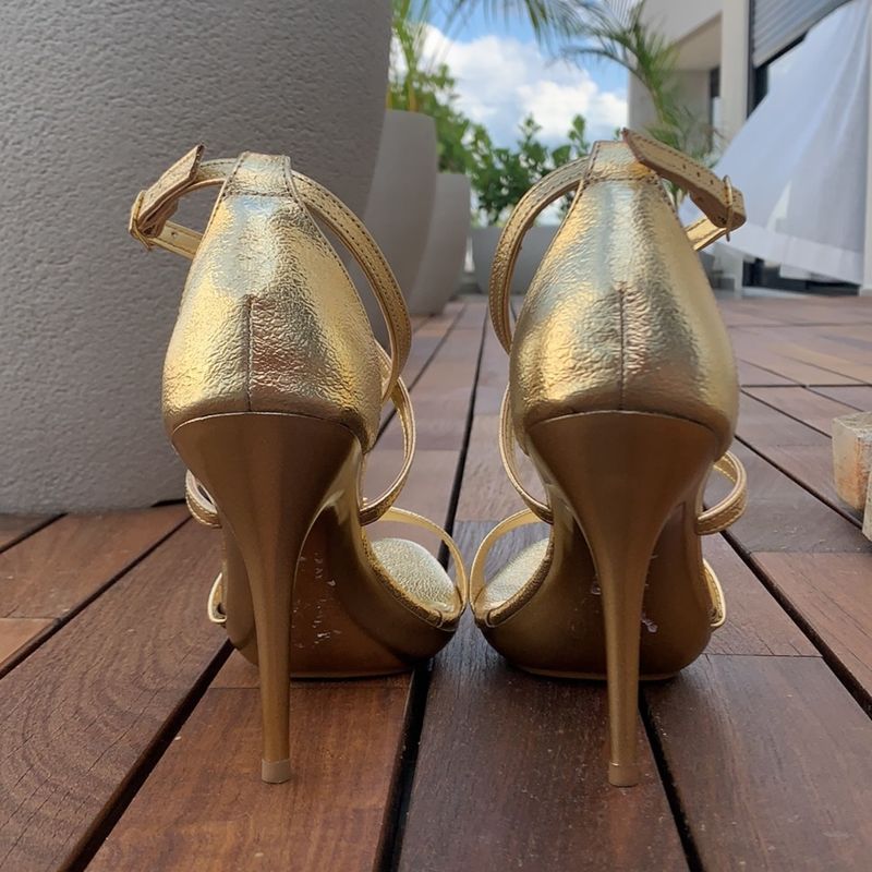 Sandalia Dourada Salto Alto Fino Sand lia Feminina Crysalis Nunca Usado 51939262 enjoei Very well made.
