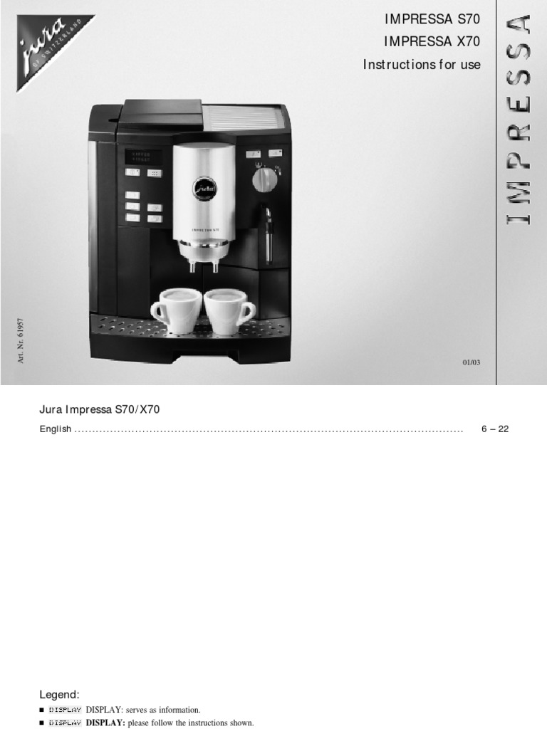 Jura Impressa x70 User Manual en PDF Coffee Water Very well made.
