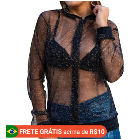 Bomber Tule Cristal Jaqueta Moda Brilho Glitter Ultra Leve Very well made.