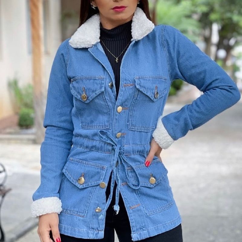 Jaqueta Parka Alongada Feminina Jeans Com Pelinho Queima de Very well made.