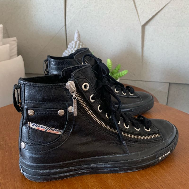 Tenis Masculino Diesel Cano Alto S Nentish Ziper Couro Preto Very well made.