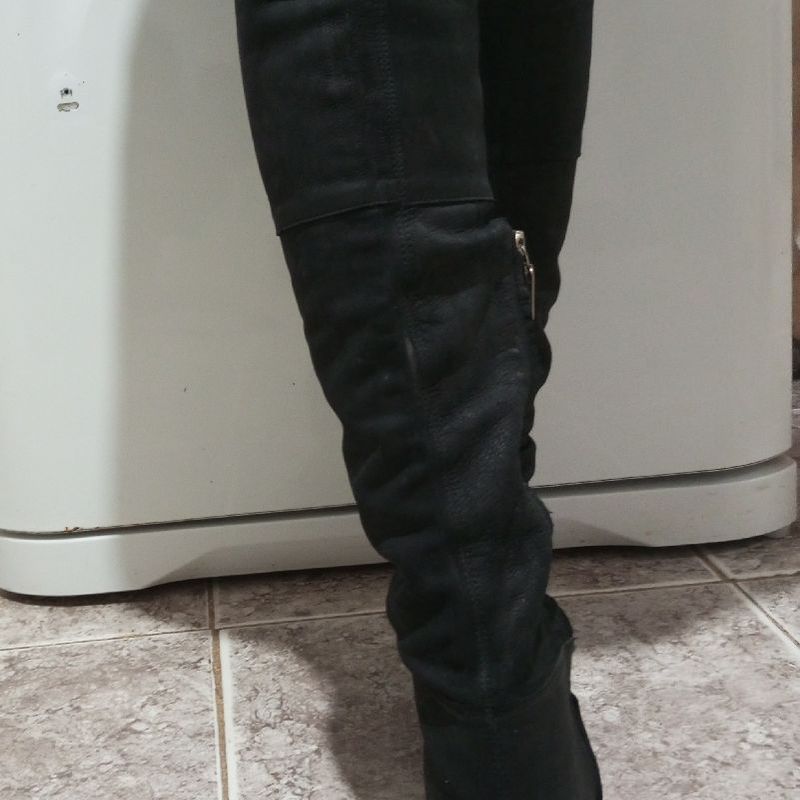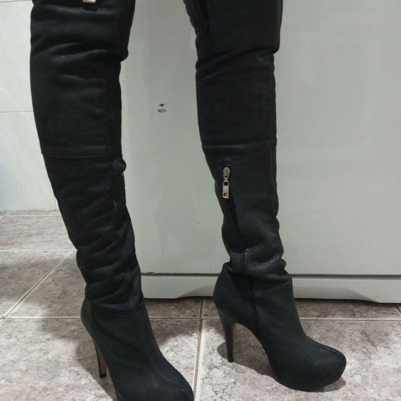 Bota Maxi El stico Salto Tratorado Couro Preto Very well made.