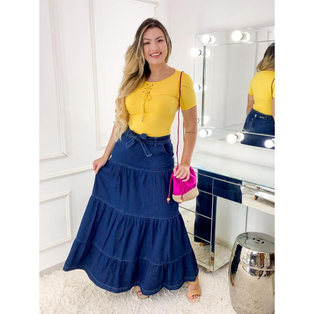 Saia Jeans Longa Tr s Marias Rodada Moda Evag lica Feminina Very well made.