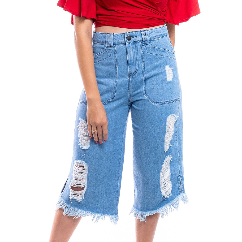 Pantacourt Jeans com Ajuste na Cintura Very well made.