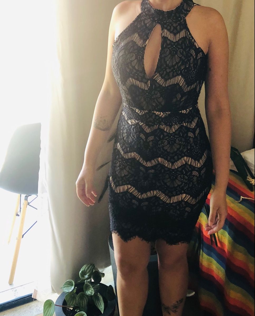 Vestido Curto Renda Preta Fundo Bege Vestido Feminino Usado Very well made.