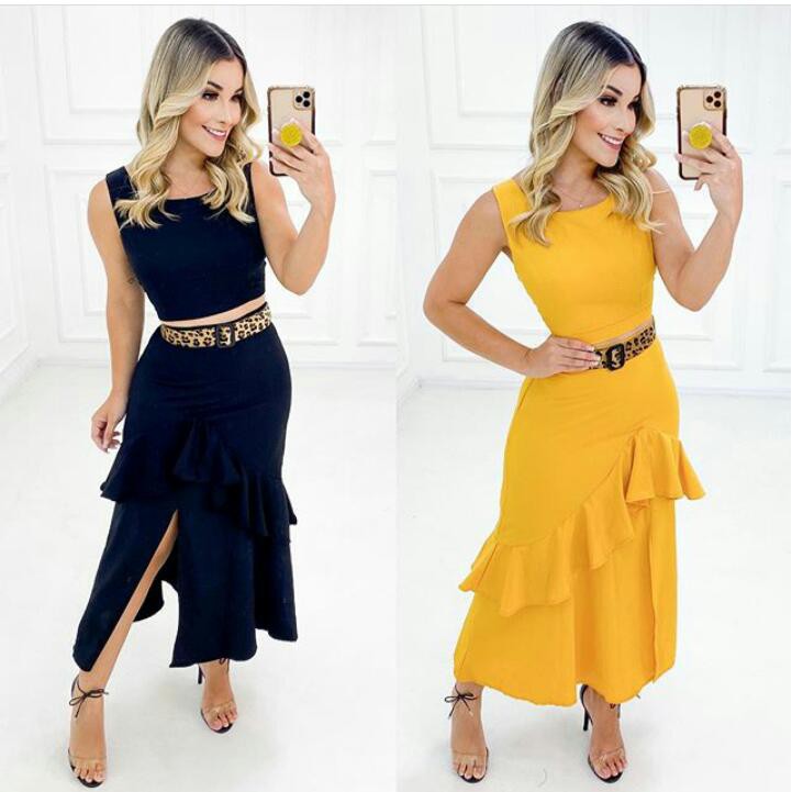 Saia Midi em Tecido Thige com Babados e Fenda Lez a Lez Very well made.