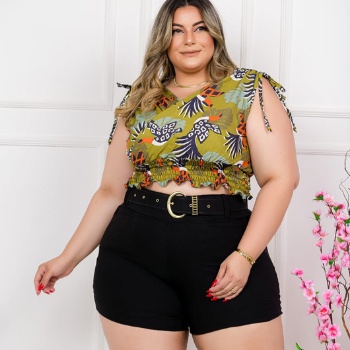 Conjunto Plus Size Blusa Short Com cinto Roupas Femininas 48 ao 52 Very well made.