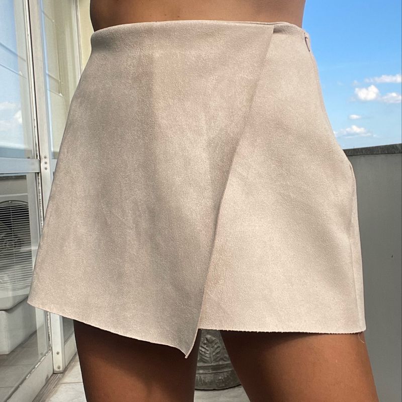 Short Saia Zara Tamanho P Camurca Bege Shorts Feminino Zara Very well made.