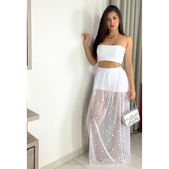 Conjunto saia longa com fenda e Cropped com bojo Lua Branco Very well made.