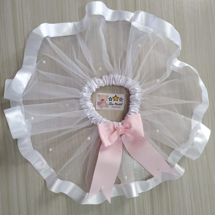 Saia Tule Tutu Branco C Cetim Branco de Beb para Body Tem tico Comemora o de Mesvesario Very well made.
