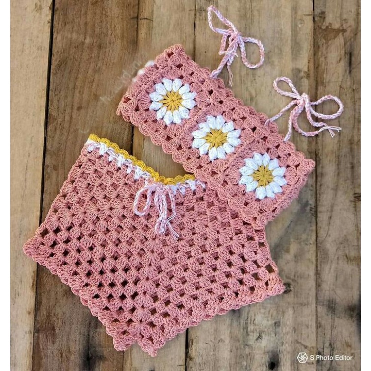 Conjunto de croch infantil blogueirinha top e short sa da de praia Very well made.