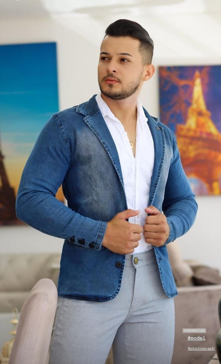 Comprar Jaqueta estilo Blazer Jeans Gola Alta Masculina Slim Fit Very well made.
