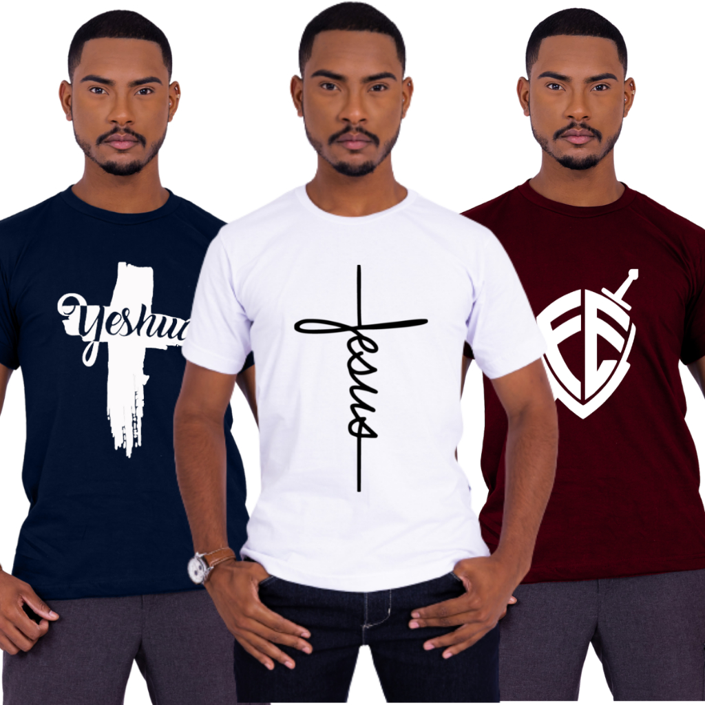 Kit 3 Camiseta Camisa F Gratid o Jesus Aben oado Evang lica Very well made.