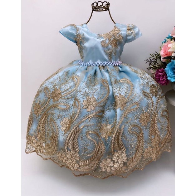 Vestido Azul Realeza Dourado Princesas Jardim das Borboletas Very well made.