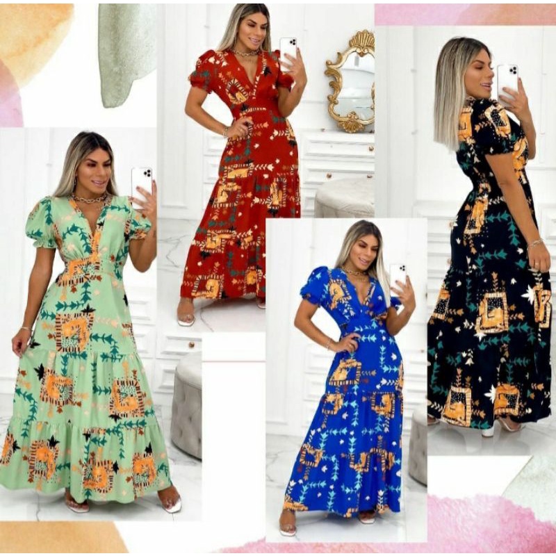Vestido Longo Casual Florido Manga Longa Very well made.