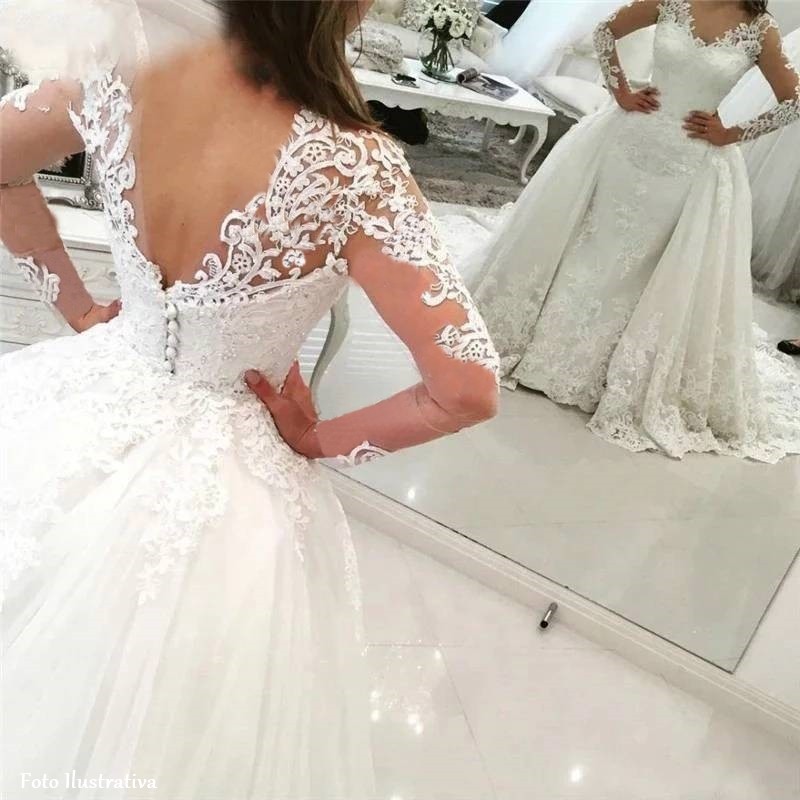 Vestido de noiva manga comprida com saia destac vel Vestido Very well made.