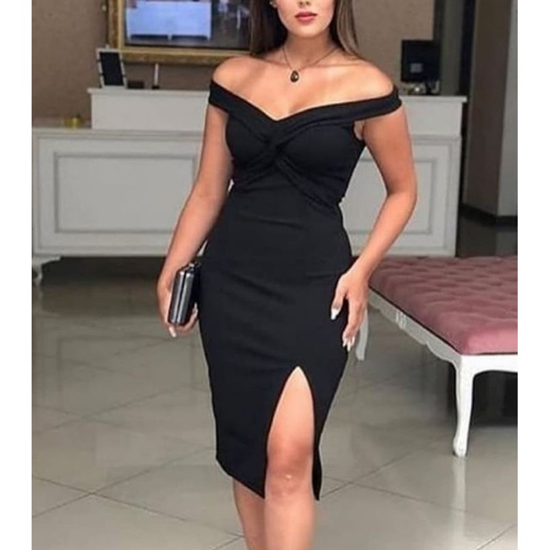 Vestido Decote Ciganinha Justo Midi Festas Casamento Civil Very well made.