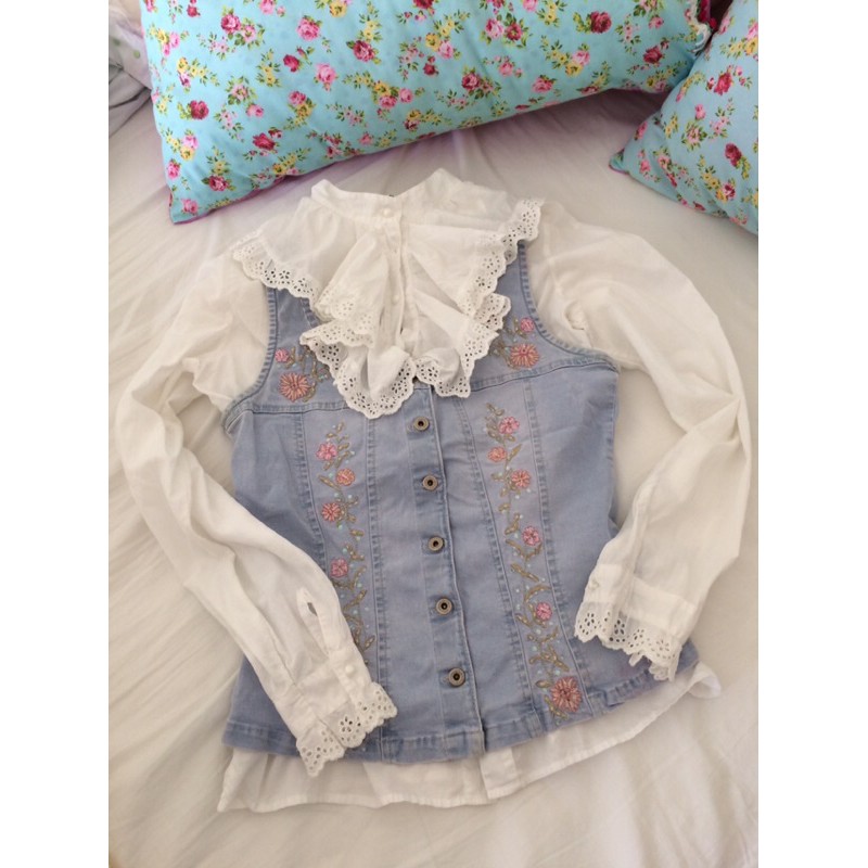 Super Estiloso Colete Jeans Clareado com Detalhe de Bordado em Very well made.