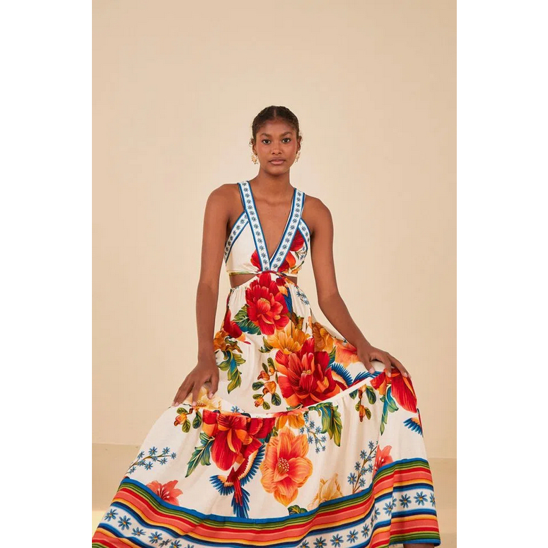 Vestido longo estampado chita azulejo Farm Loja Viva Vida Very well made.