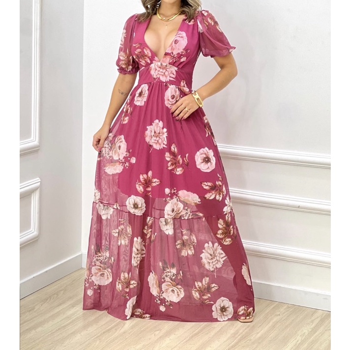 Vestido de Festa Estilos Florido Vestido de Festa Ver o em Very well made.