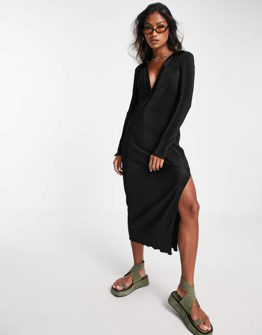 Vestido midi negro estilo polo de manga larga de canal premium de Very well made.
