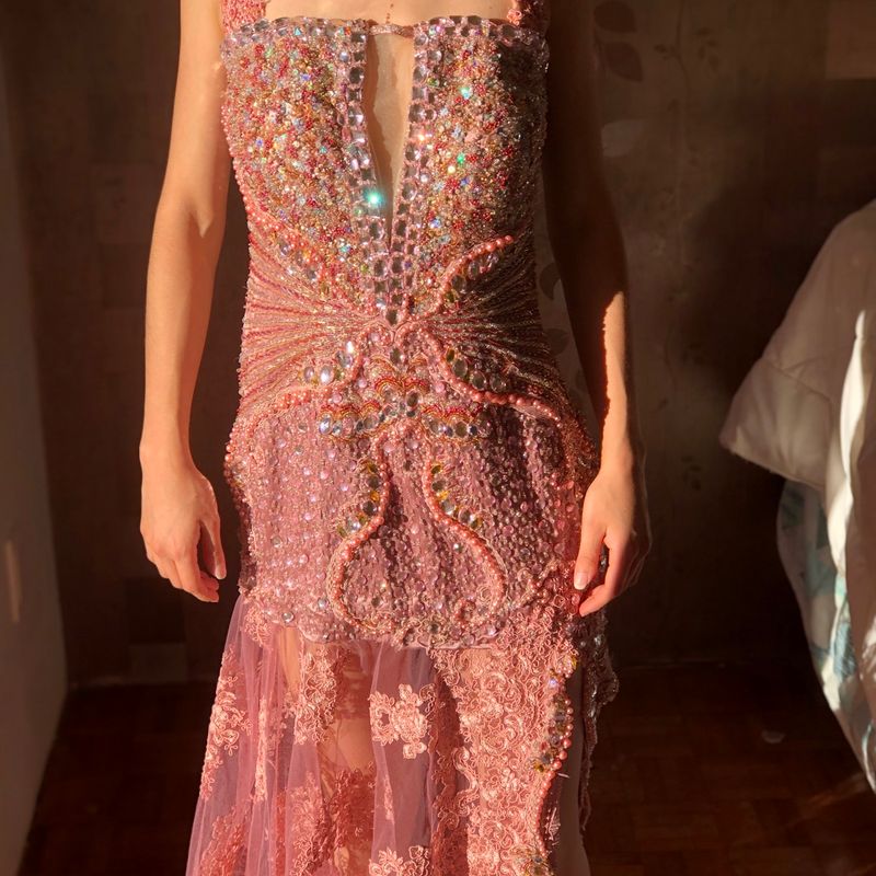 VESTIDO DE FESTA SEREIA MANGA LONGA TULE VERDE BORDADO EM PEDRARIA Very well made.