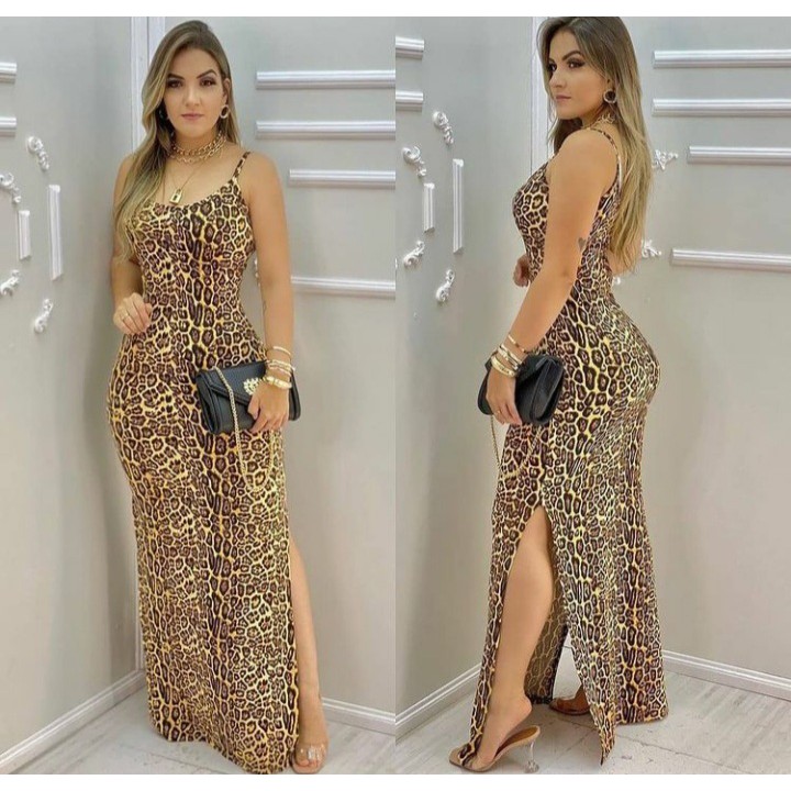 Vestido feminino tubinho longo c fenda lateral e alcinha novo Very well made.