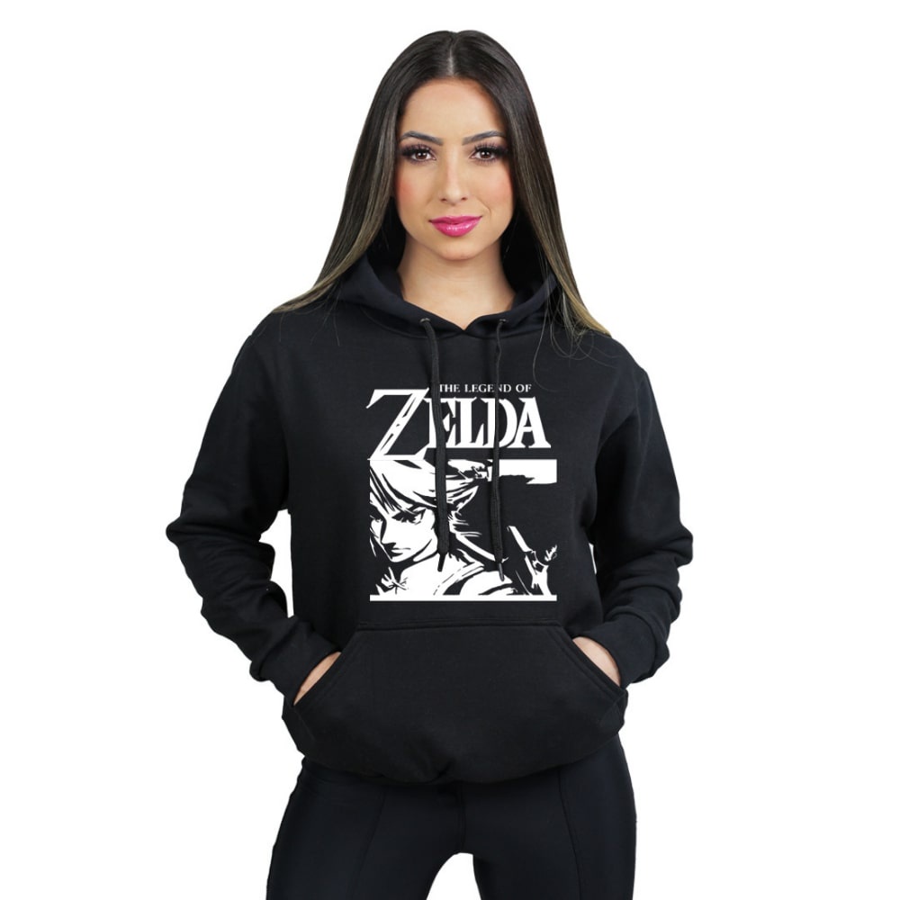 Moletom Casaco The Legend of Zelda Link Feminino Frio Capuz Bolso Moleton 1327 Preto Branco Very well made.