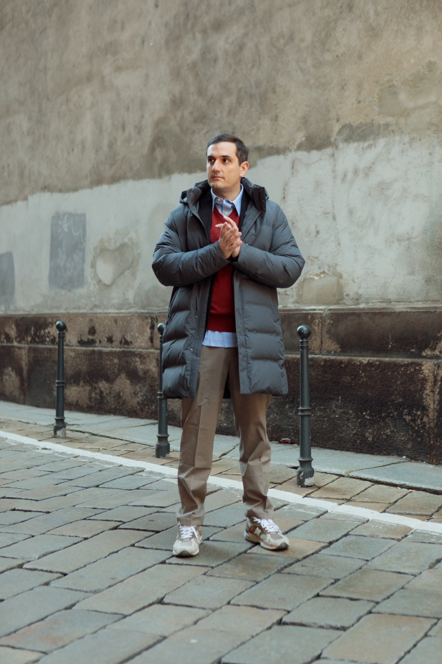 Check styling ideas for Hybrid Down Coat Cashmere Turtleneck Very well made.