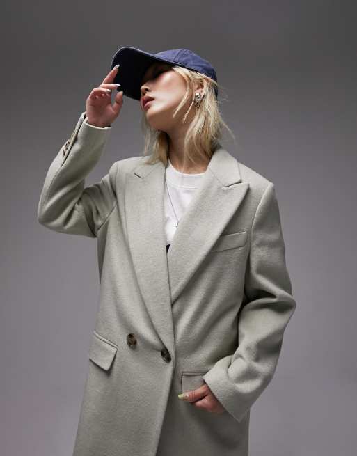 Topshop Petite longline double breasted smart coat in sage Very well made.