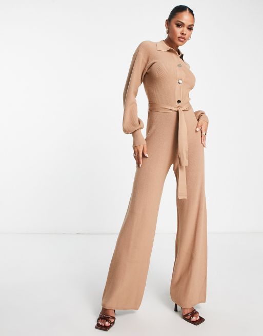 Aria Cove drape knit jumpsuit with tie waist in camel ASOS Very well made.