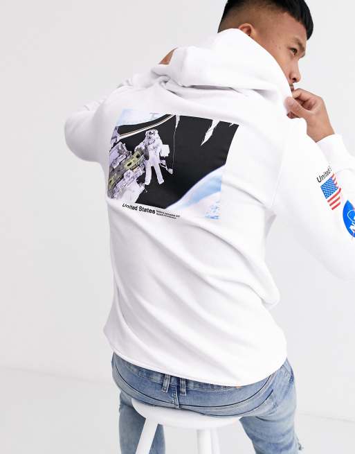 ASOS DESIGN hoodie with Nasa back and sleeve print in off white Very well made.
