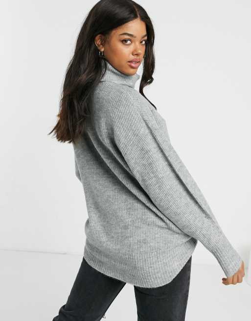 Stone Slouchy Longline Knit Roll Neck Sweater PrettyLittleThing USA Very well made.