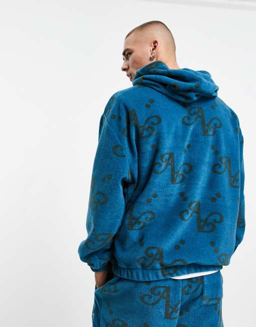 ASOS Actual oversized polar fleece hoodie with all over print and Very well made.