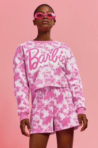 MATTEL Woman s White Pink Tie dye sweatshirt with Barbie print OVS Very well made.