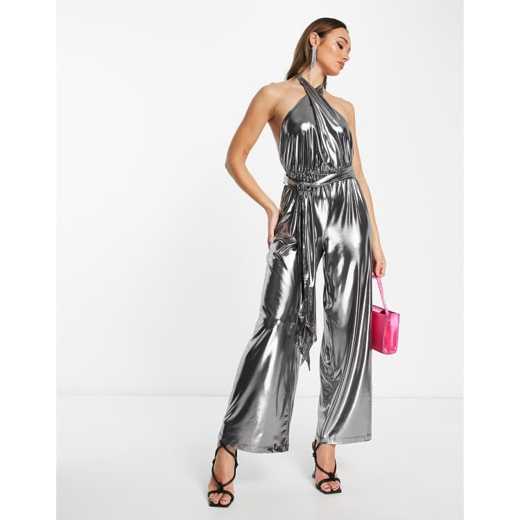 Forever Unique metallic wide leg jumpsuit Very well made.