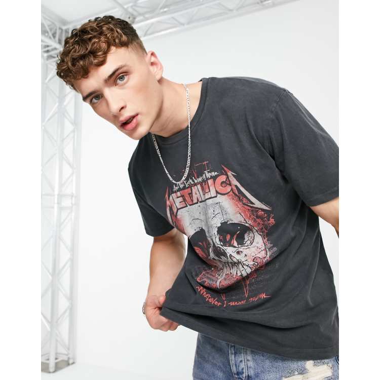 Topman oversized t shirt with red Metallica skull print in washed black Very well made.