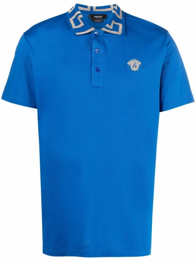 Greca Border Short sleeve Polo Shirt In Royal Blue Very well made.