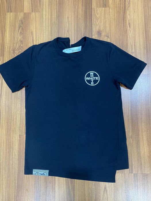 OFF WHITE Slim Fit Split Logo Print T Shirt Blue Men s SS19 US Very well made.
