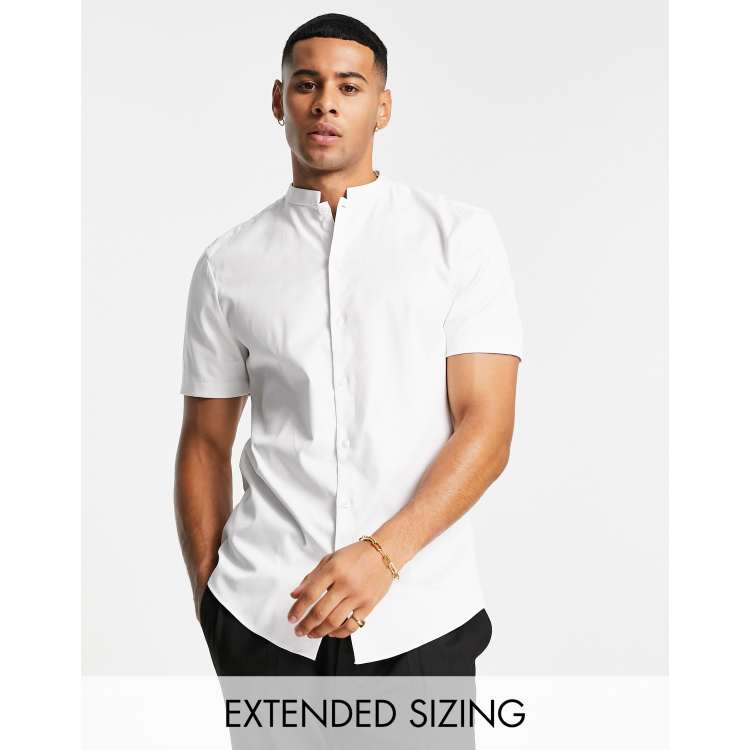 ASOS DESIGN Premium slim fit sateen mandarin collar shirt in white Very well made.